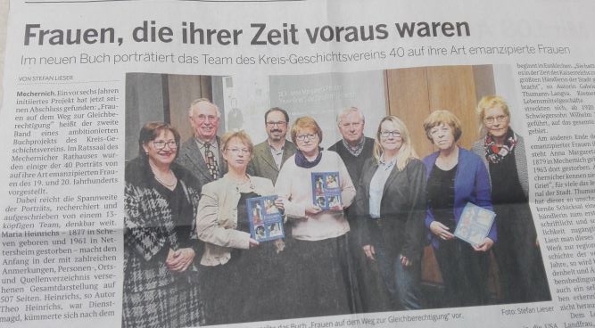 Die Frauen der Familie Roggendorf waren das Thema meines Vortrages im Rahmen der Buchvorstellung im Mechernicher Rathaus. Und eines wurde an diesem Abend deutlich. Frauenleben in der Eifel war bunt und vielfältig und führte manches Mal über den Kreis Euskirchen hinaus, bis nach Amerika oder sogar nach Indien. Nachzulesen ist dies in den 40 Porträts, die im Band „Frauen auf dem Weg zur Gleichberechtigung“, hrsg. vom Geschichtsverein des Kreises Euskirchen, Weilerswist 2019, versammelt sind.